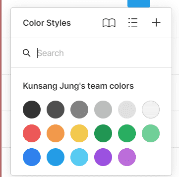 Team에 등록된 스타일 가이드(폰트, 색상, 그리드) 들을 동일 프로젝트에서 사용이 불가능한거 같습니다.