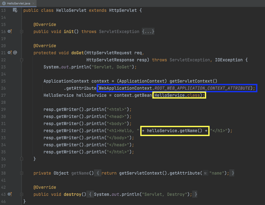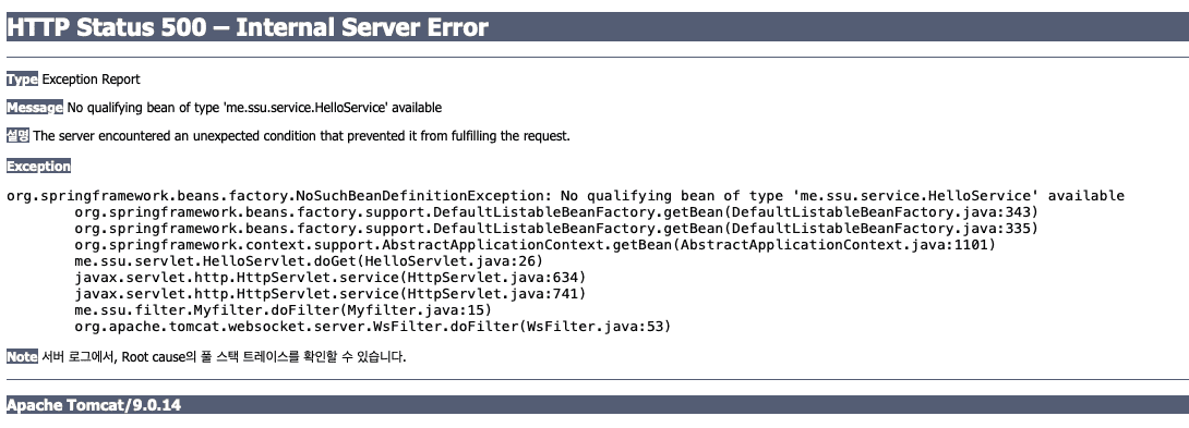 HelloService의 값을 못 가져오고 500 에러가 나는 이유는 뭔가요 ???