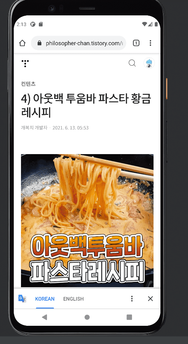 휴대폰상에서는 강의때와 마찬가지로 URL연결이 정상적으로 동작됩니다