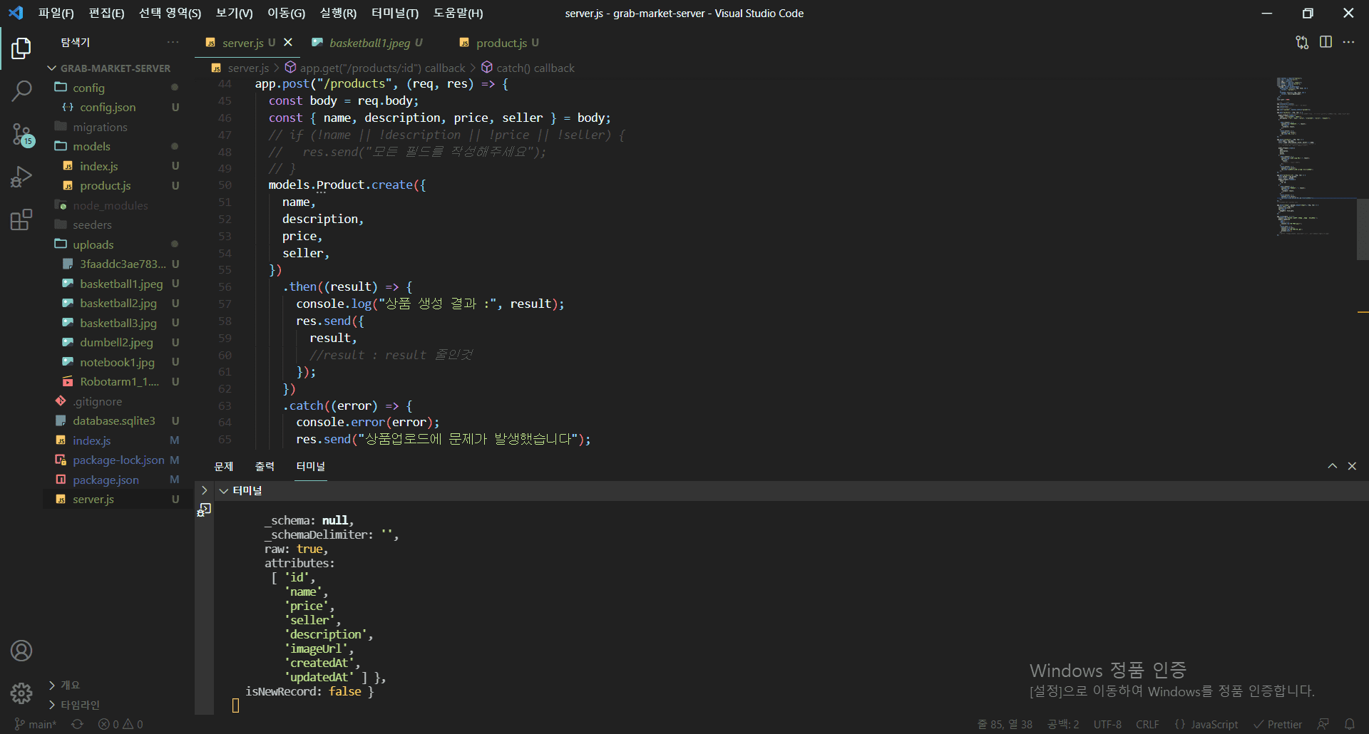 localhost8008/products에서는 id, name, price, seller만 연동되고 description이 서버에 업로드가 되지 않습니다.