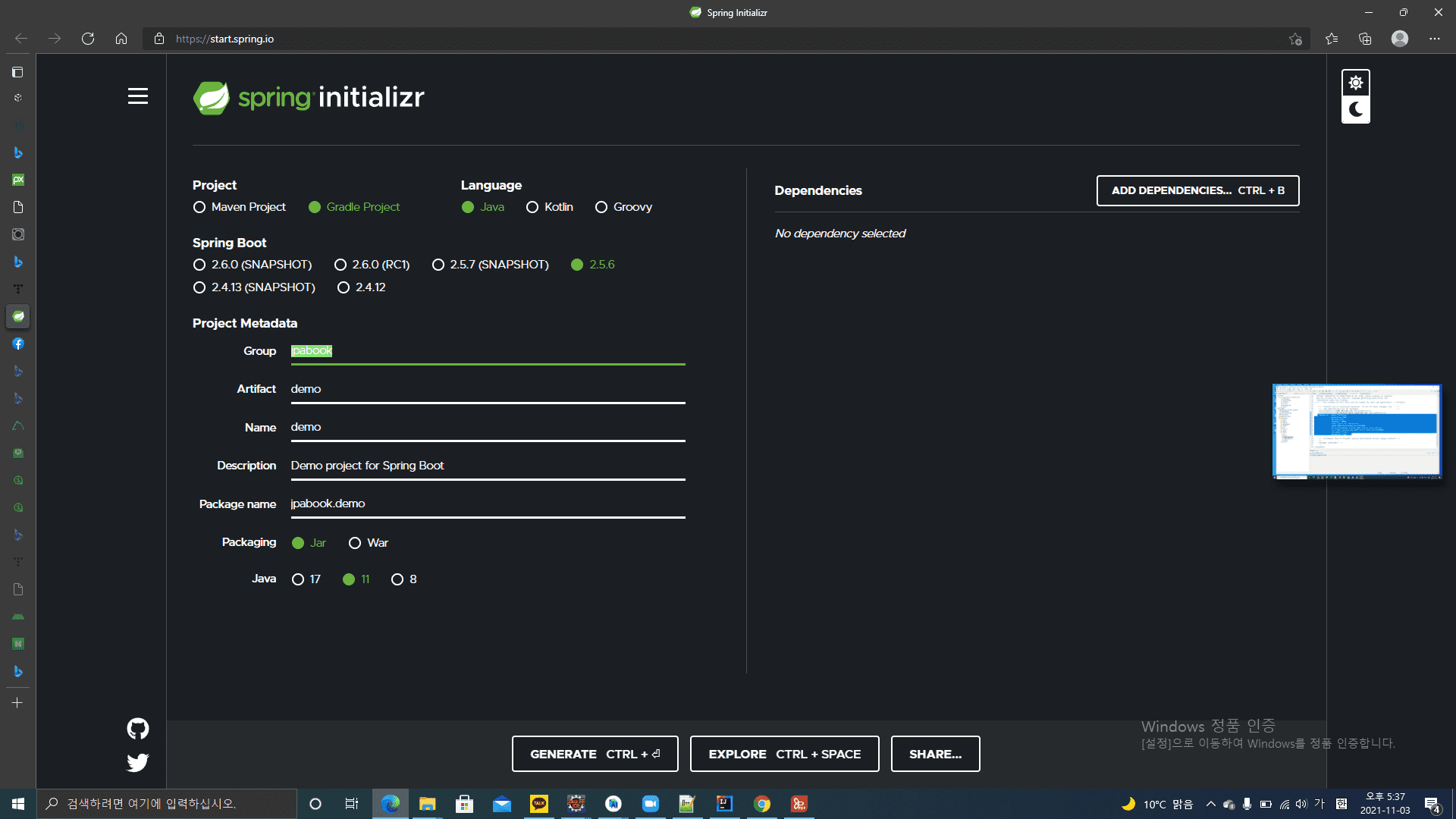스프링부트 버전 질문 드립니다 2021년 11월