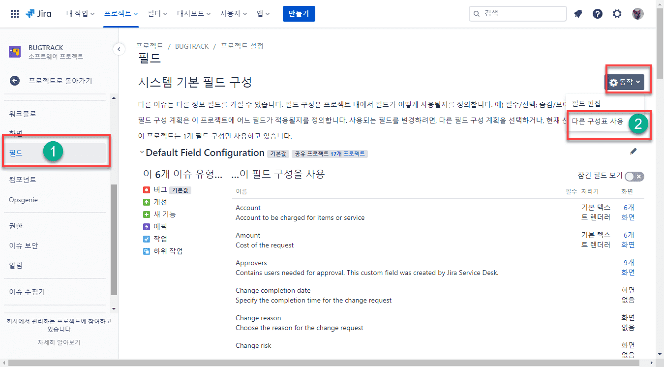 아마 현재 프로젝트와 연결된 필드 구성표에 이슈 유형이 빠져 있는것 같습니다.