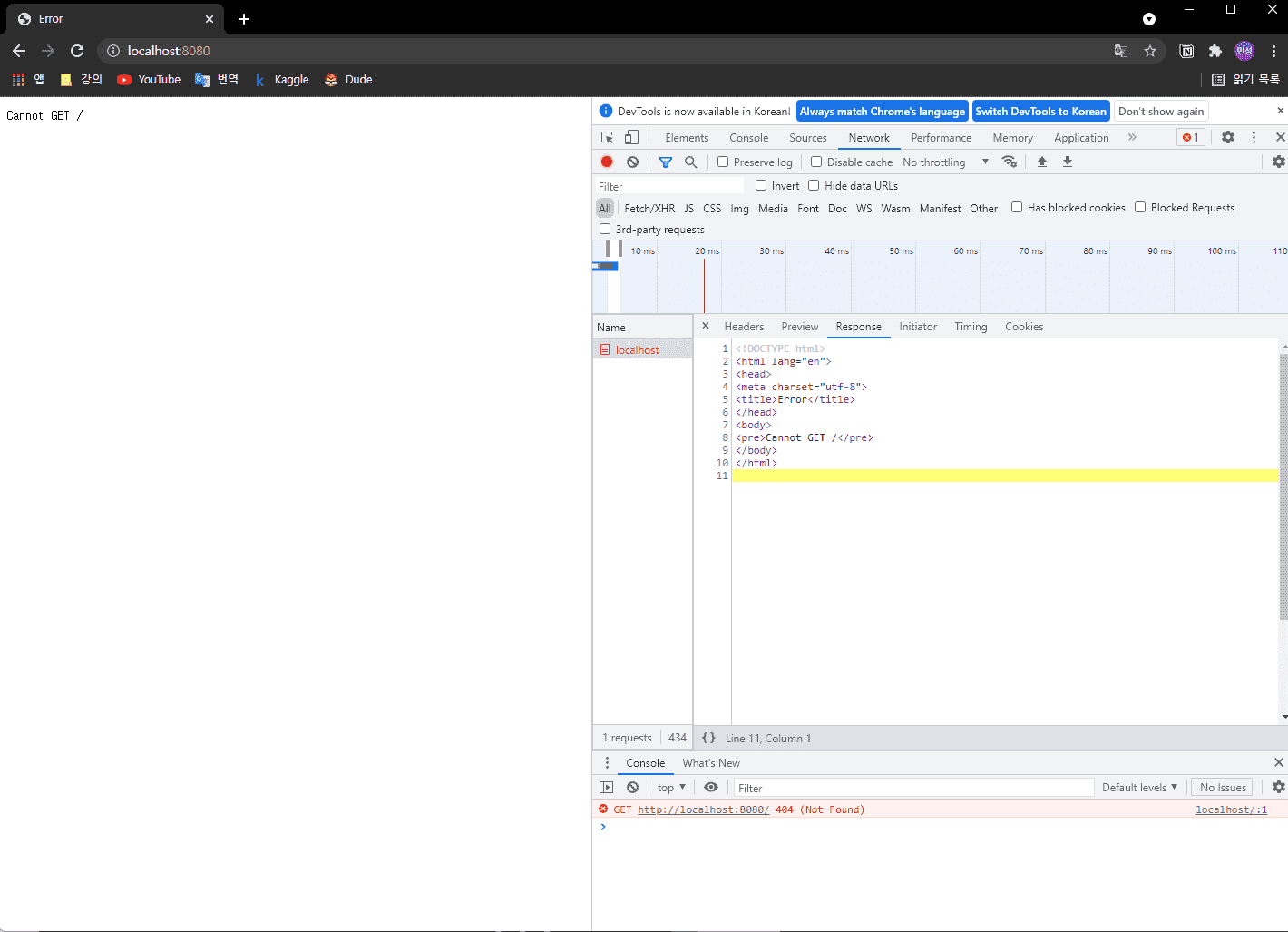 글쓴님과 완전 똑같은 상황이라 따로 코드를 안올렸어요! http://localhost:8080/ 에 들어가면 Cannot Get/ 이 뜹니다 ㅠ