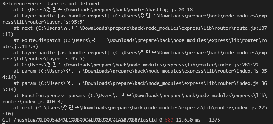 영상을 보고 따라하고 있는데 user/1은 잘 되지만 /hashtag/해시태그는 불러와지지가 않습니다... 원인을 알려주시면 진심으로 감사드립니다....