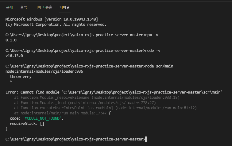 "node src/main" 으로해도 실행이 안됩니다ㅠㅠ