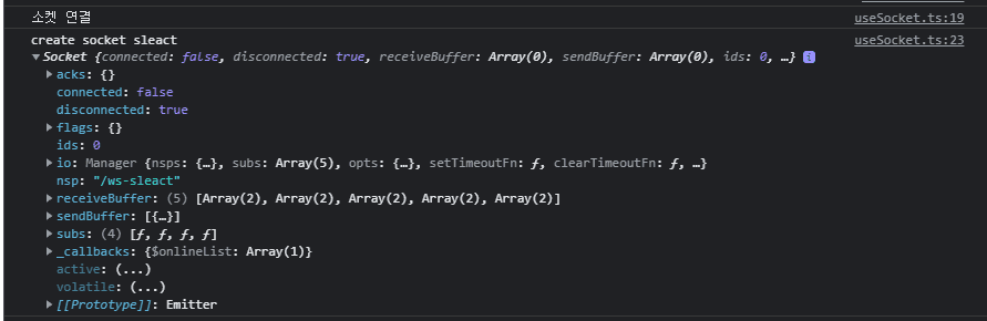 소켓 연결 요청을 보내는 것 같기는 한데, connected가 false라서요.