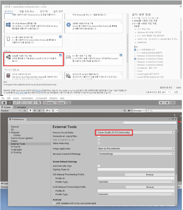 [Visual Studio] 설치 시 [Unity를 사용한 게임 개발]을 선택해주세요.