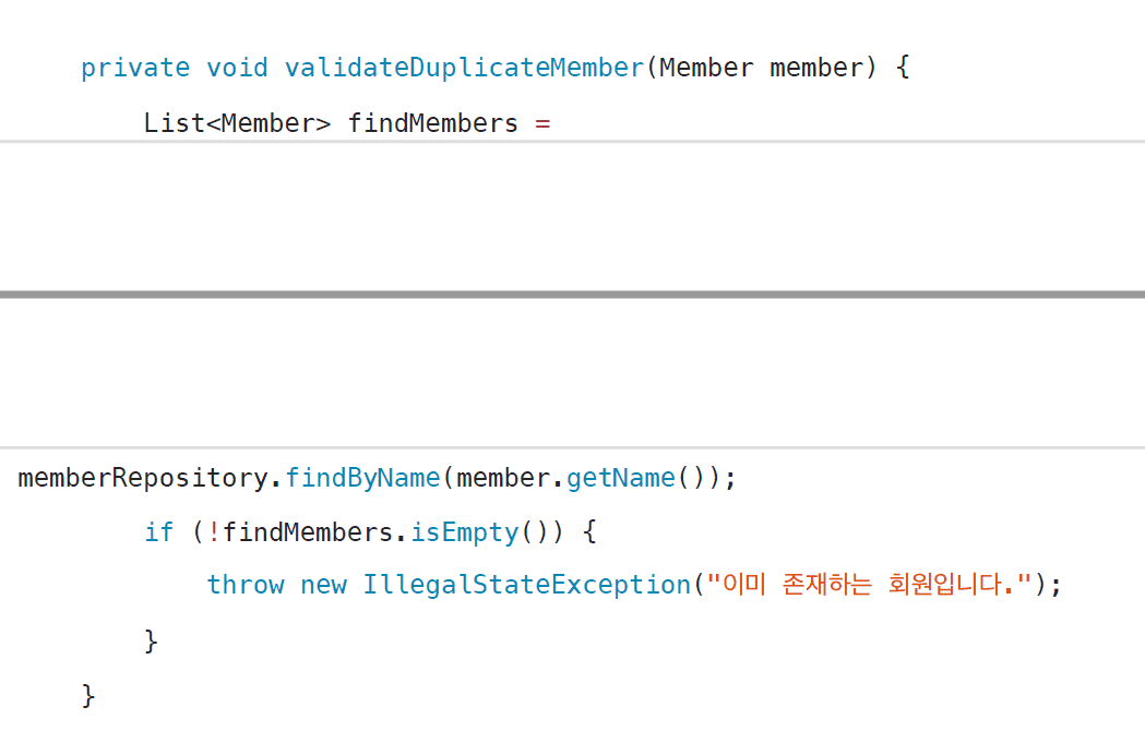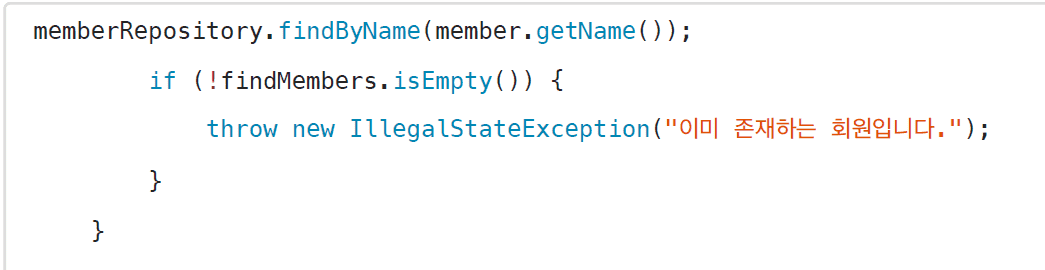 throw new IllegalStateException("이미 존재하는 회원입니다.");