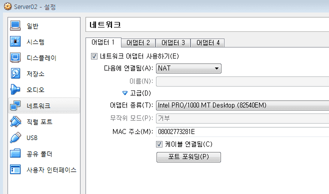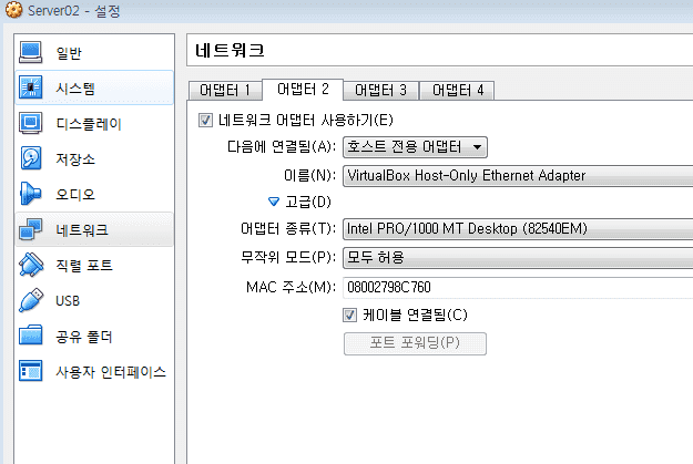 두번째로 VirtualBox 네트워크 설정입니다. 아래 스크린샷 참고해 보시고요..각서버의 네트워크 아답터가 정상 설정에도 Pending 되는 경우가 왕왕 있습니다. 이땐 설정 정보를 열어보고 확인만 해도 정상으로 돌아 오는 경우도 있습니다.