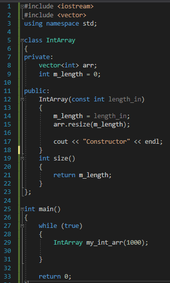 Q2. private에서 자료형과 변수를 선언해 줄때, vector<int> arr = nullptr; 이라던지