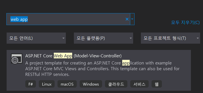2019 비주얼스튜디오 쓰고있습니다. 아무리 찾아봐도 c# 기반 mvc가 없습니다.