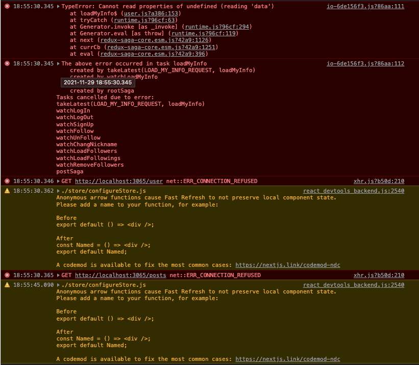 이후 새로고침을 하는데 갑자기 생긴 에러로 감을 잡을수가 없습니다. loadMy_info에 문제가 있는건지 reducer와 saga를 확인하고 back의 routes/user.js와 routes/post.js, routes/posts.js 까지 확인 결과 문제가 없습니다.
