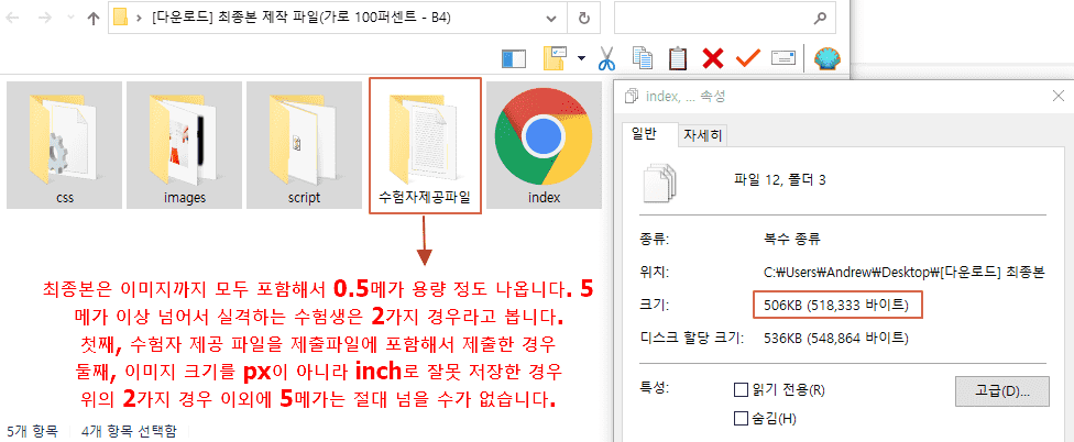 웹디자인기능사 실기 제출파일 용량이 5메가가 초과되면 안되는데