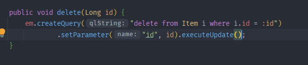 em.createQuery("delete from Item i where i.id = :id", Item.class)