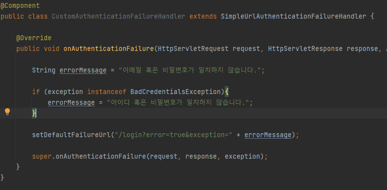 그런데 FailureHandler 클래스파일 까지는 가는데 컨트롤러에 파라미터값이 넘어가질 않습니다..