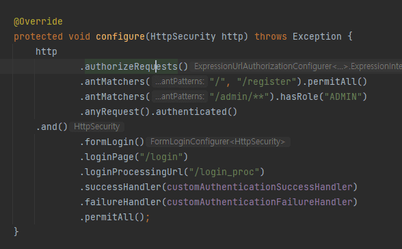 한번 비밀번호를 틀린 후 정상적인 비밀번호를 통해 로그인을 시도하면 로그인이 되지 않고 error, exception파라미터가 넘어갑니다. 그런데 이때는 FailureHandler 클래스를 거치지 않습니다..