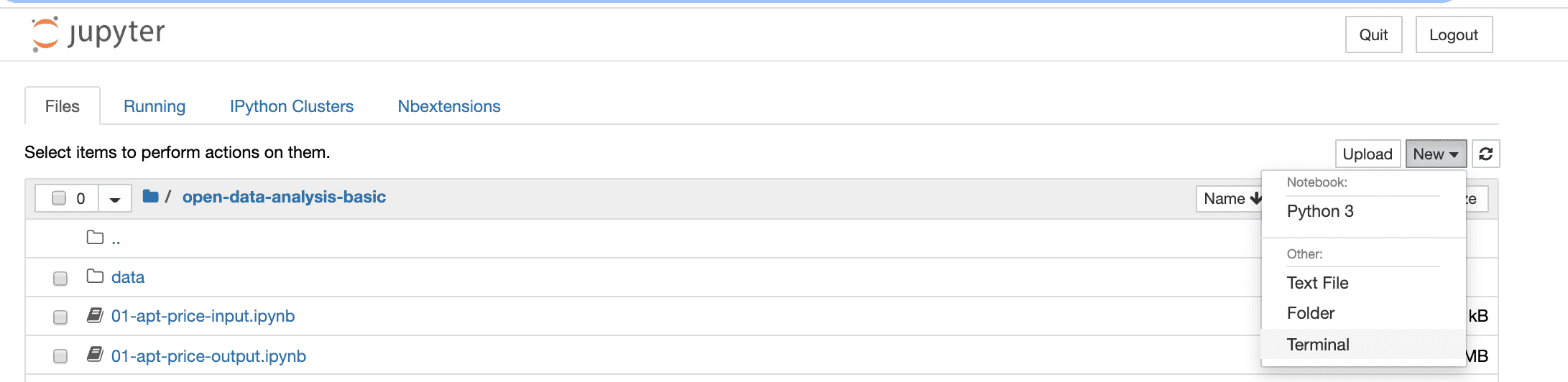 아래 화면의 주피터 노트북 내부에 있는 터미널을 열어서 설치해 보세요.