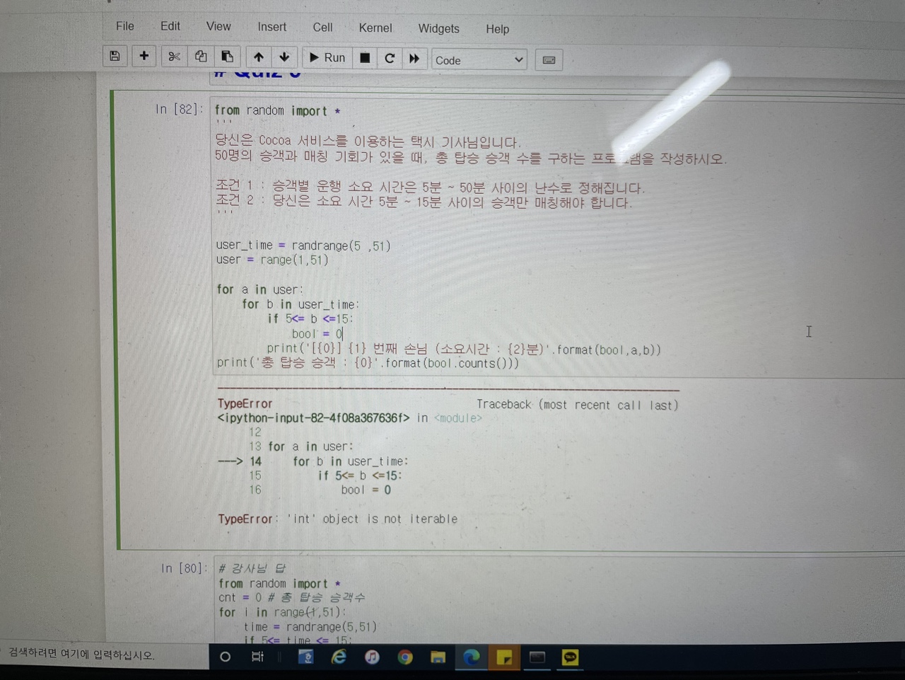 int object is not iterable 이라는 에러가 왜 뜨는지 모르겠습니다.!!