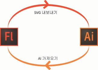 애니메이트와 일러스트레이터는 svg 파일로 호환 됩니다.