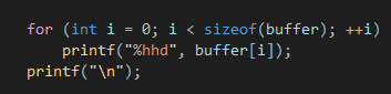 #define _CRT_SECURE_NO_WARNINGS #include <stdio.h> int main() { FILE* fp; int ch; /* setvbuf() */ fp = fopen("input.txt", "r"); char buffer[32] = { '\0', }; setvbuf(fp, buffer, _IOFBF, sizeof(buffer)); for (int i = 0; i < sizeof(buffer); ++i) printf("%hhd", buffer[i]); printf("\n"); ch = fgetc(fp); for (int i = 0; i < sizeof(buffer); ++i) printf("%c", buffer[i]); printf("\n"); fclose(fp); return 0; }