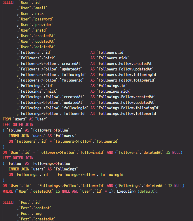 orm을 날리면 로그에 쿼리가 나타나는데가독성이 너무 최악입니다.쿼리도 확인해가며 공부하고 싶은데요, 어찌 해결방법이 없을까요?