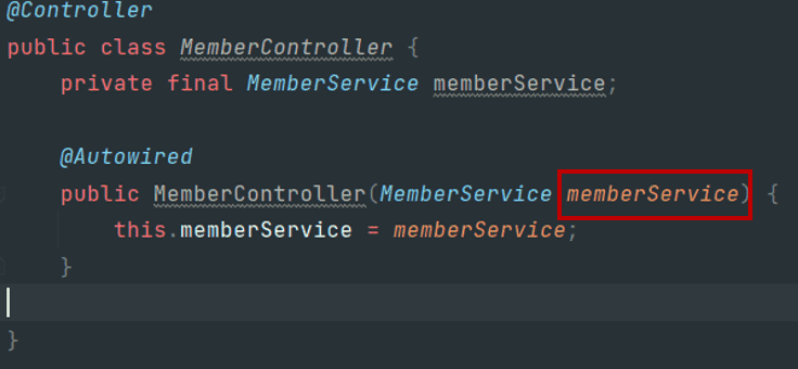 @Autowired에 의해 MemberService는 MemberController 생성자의 파라미터로 주입될 것입니다.