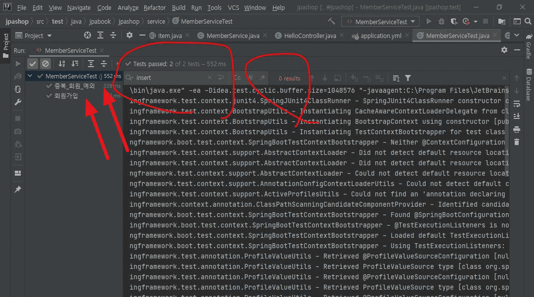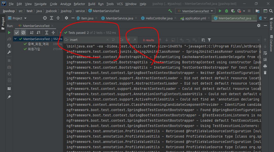 제 테스트를 실행하면 insert문이 보이지 않습니다.