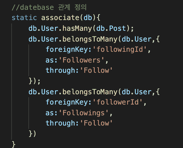 혹시 Models의 User의 db관계 부분이 잘못 되었나 확인을 해보았는데, 제로초님께서 알려주신 코드랑 비교해서 다른 부분이 없는 것 같습니다.