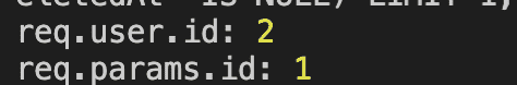 혹시나 req.user.id 값이나 req.params.id 값이 잘못된건 아닌지, console로 찍어보았습니다.