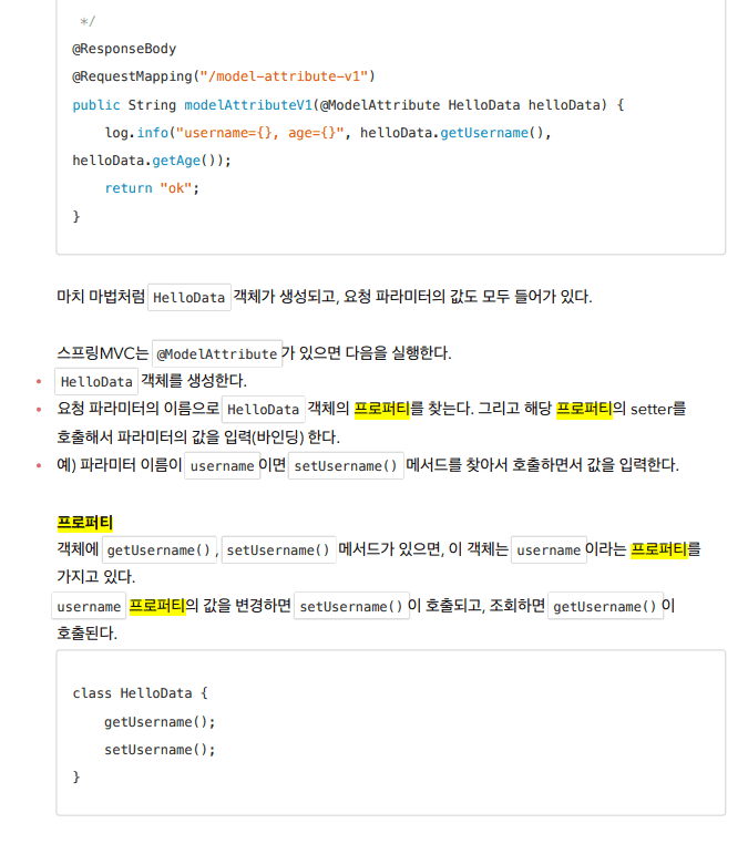 MemberForm에 값을 채울 때 HTML 에서 넘어온 name과 동일한 필드의 Setter로 값을 채운다고 생각하시면 됩니다.