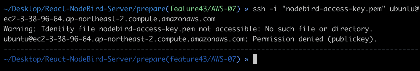 Warning: Identity file nodebird-access-key.pem not accessible: No such file or directory.