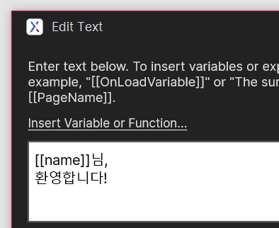 변수를 불러왔을 경우 줄바꿈이 일어납니다.