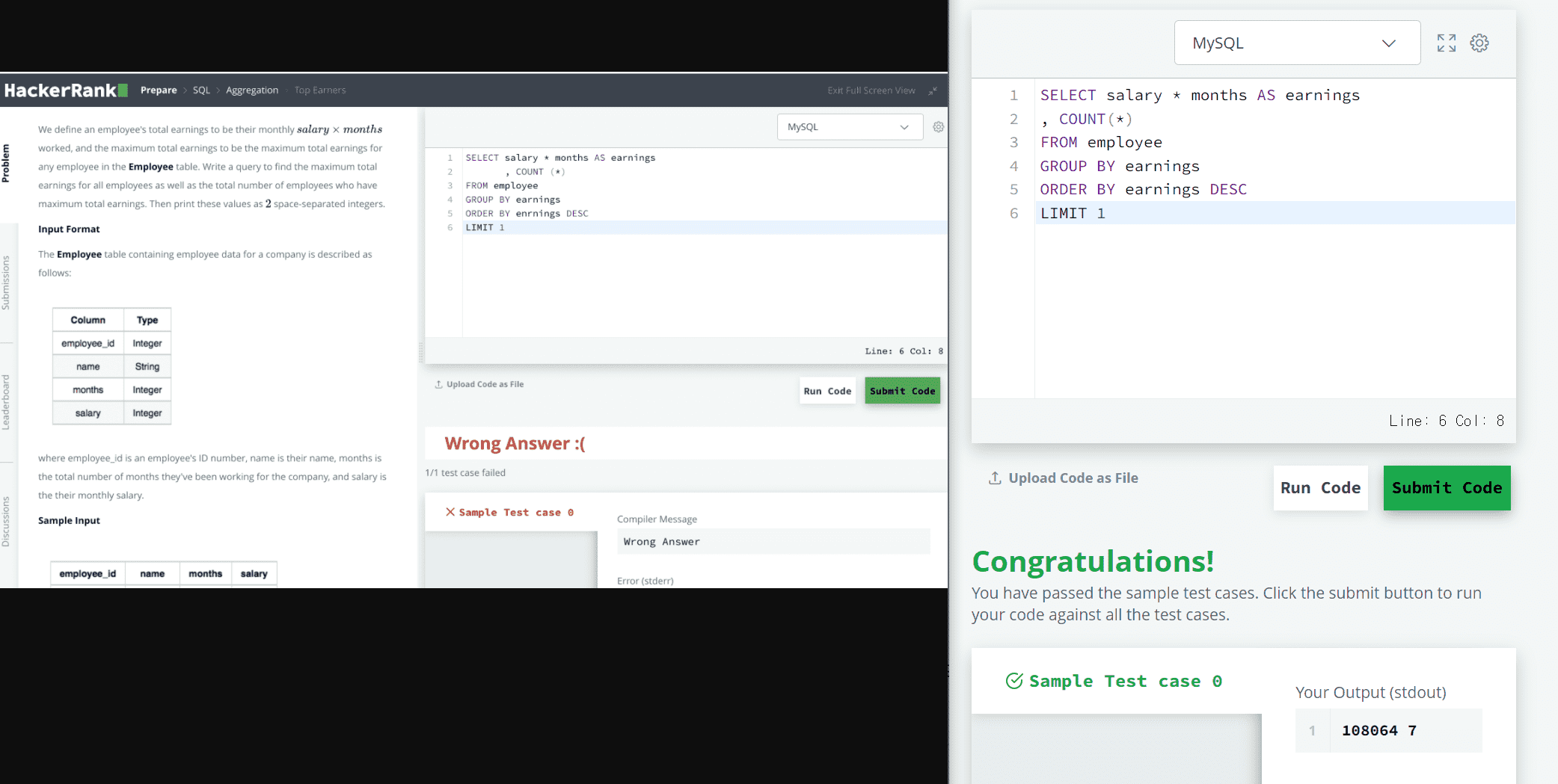 전달주신 스크린샷 참고하여 똑같은 쿼리 작성하였을 때 정상적으로 제출 완료 가능하였습니다.