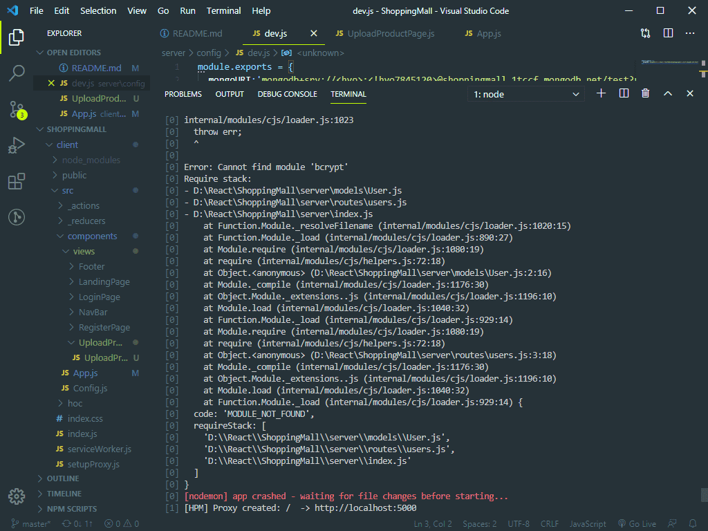 아 bcrypt 모듈이 다운 받아지지 않아서 서버부분에서 에러가 났네요