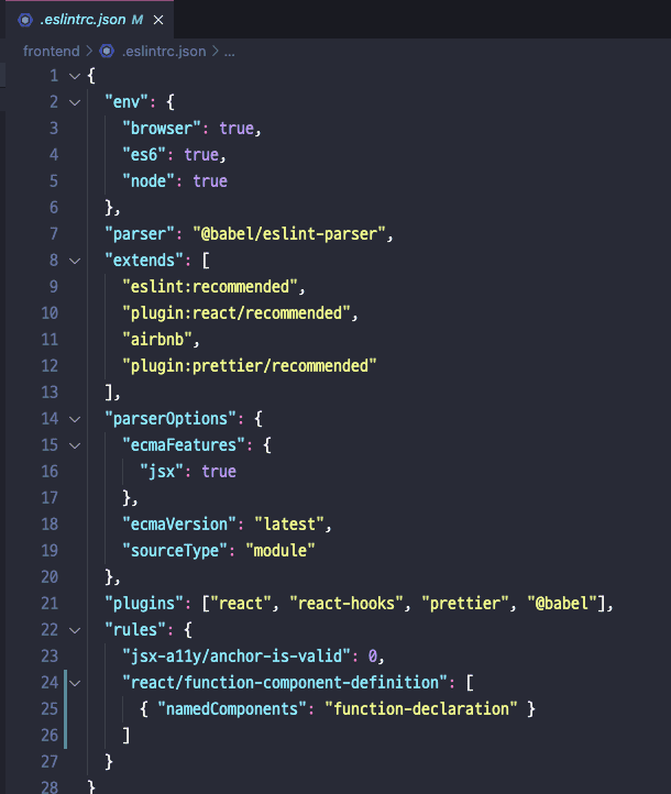 babel-eslint가 deprecated되고 @babel/eslint-parser로 사용되는 것 같아서 세팅을 해보았습니다만, airbnb가 잡아주지 못하고 있는 거 같은데 어떤 부분이 잘못된 건지 한번 봐주실 수 있나요?