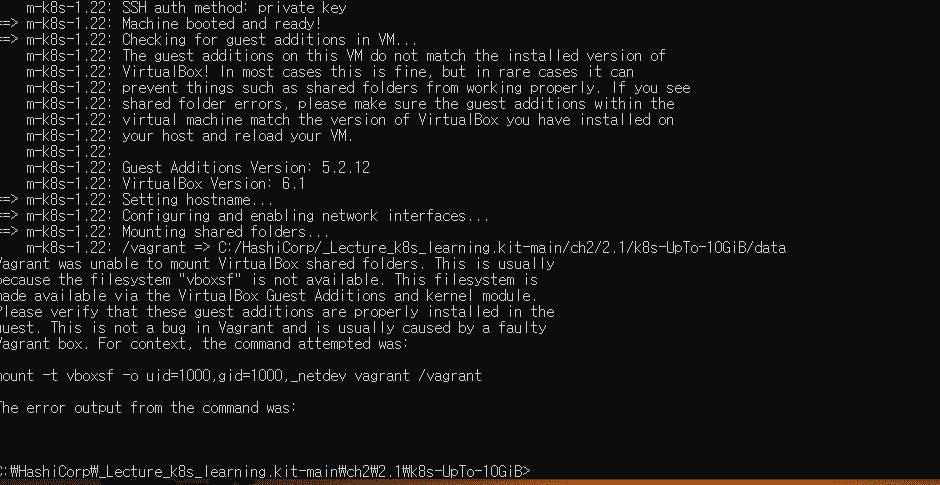 vagrant 파일 synced folder 에서 다음과 같이 고치고 난 이후 cmd