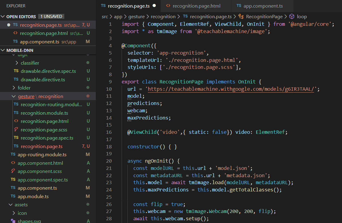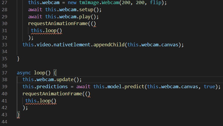 제가 다른 부분보다 gesture recognition 파트가 궁금해서 진행중이었습니다. 아이오닉 설치후 위의 상황 전까지 잘 진행이 되었는데 this.loop부분이 async함수를 밑에 넣어주어도 빨간줄이 사라지지가 않습니다..에러가 다음과 같이 뜹니다.(method) RecognitionPage.loop(): Promise<void>