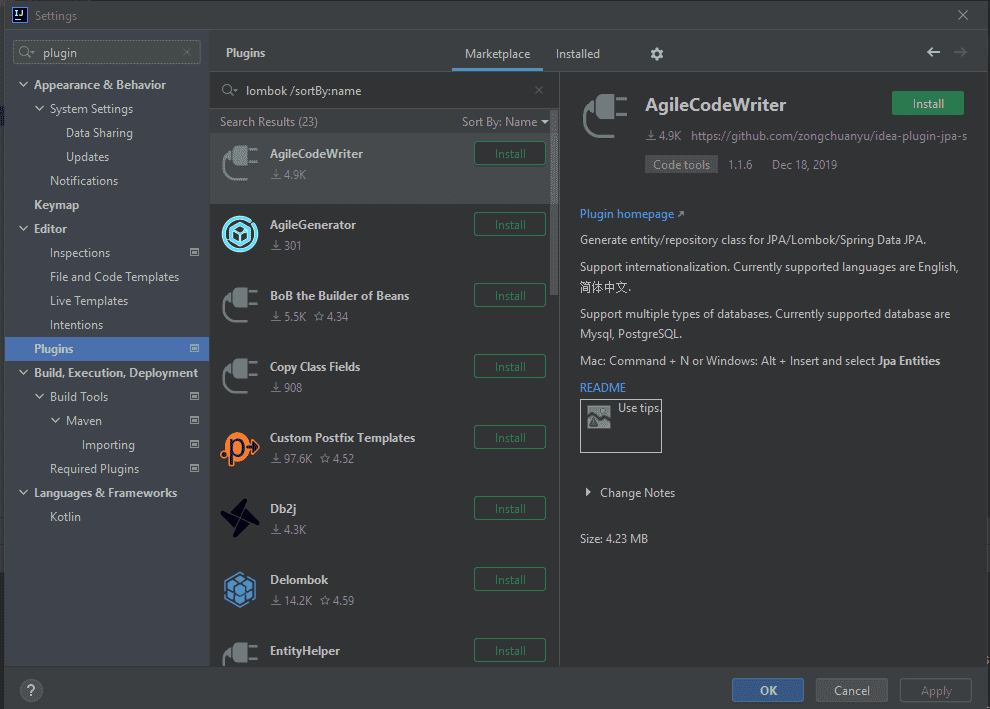 1. 플러그인에 LOMBOK을 찾을 수 없습니다. 시간이 지나서 없어진 것 같은데, 다른 Plugin 이름 알려주실 수 있으신가요?