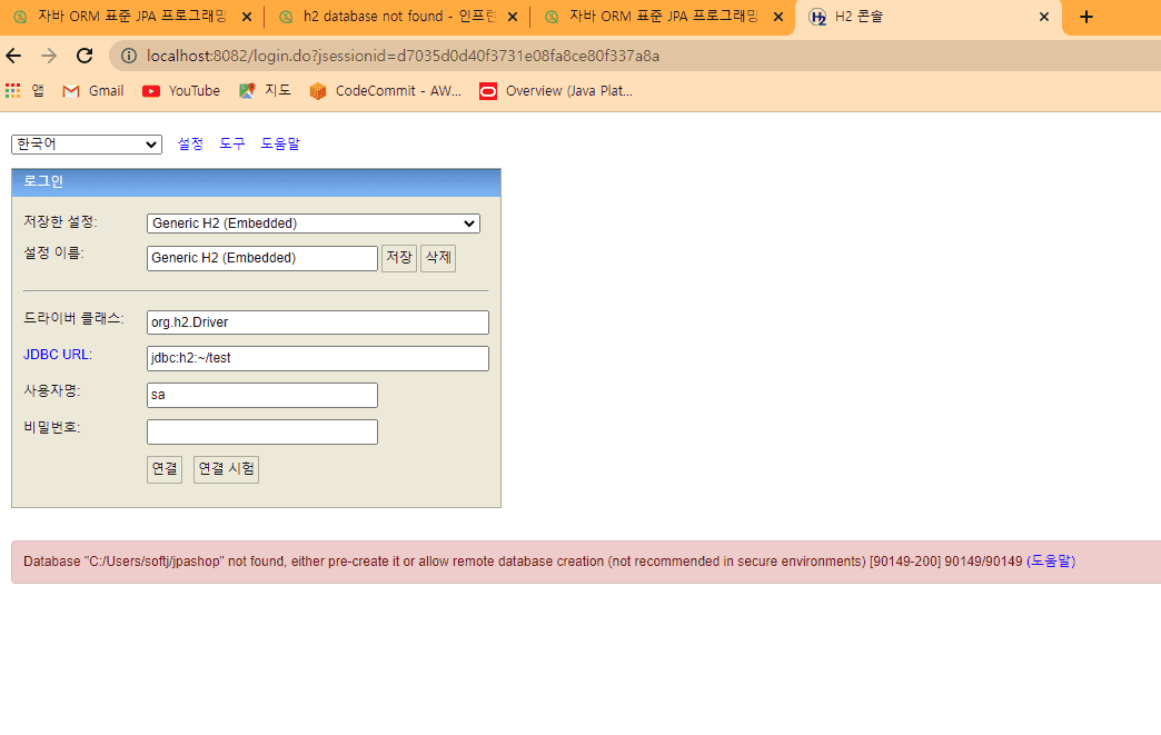 h2 database not found - 인프런 | 질문 & 답변 (inflearn.com)감사합니다.