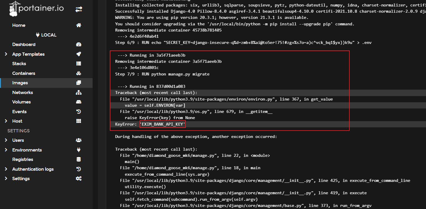 그래서 RUN ehco "" 구문을 여러개 써보니 이번엔 django SECRET_KEY가 없다고 나오고 하나의 구문속 ""에 여러 키를 space, comma, semicolon등 다양한 기호로 구분해서 적어봐도 안 먹구요 ㅠㅠ