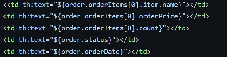 {{item.member.name}, item.orderItems[0].item.name} null 값이 뜨는 이유를 모르겠습니다..