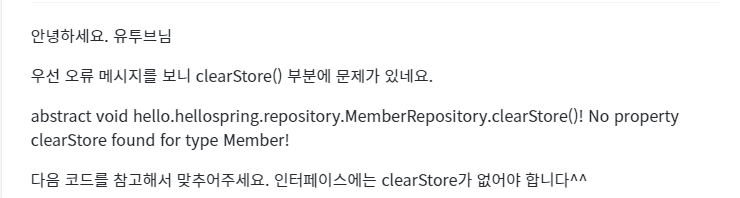 Caused by: java.lang.IllegalArgumentException: Failed to create query for method public abstract void hello.hellosprint.repository.MemberRepository.clearStore()! No property clearStore found for type Member!