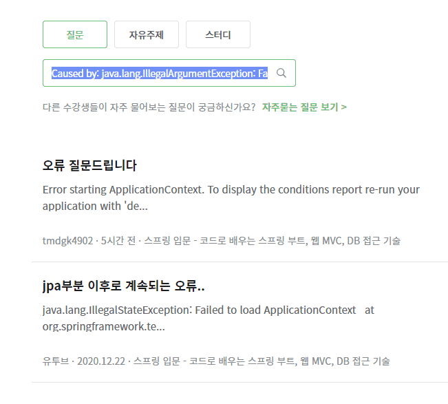 jpa부분 이후로 계속되는 오류.. - 인프런 | 질문 & 답변 (inflearn.com)