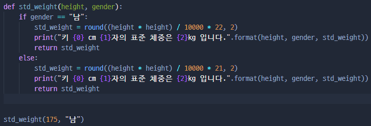 return print("키 {0}cm 남자의 표준 체중은 {1}kg 입니다"\