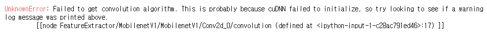 2. failed to get convolution algorithm 오류는 cuDNN 이나 CUDA 문제인것 같습니다.