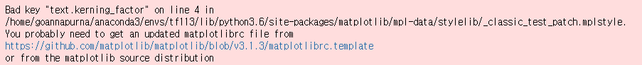 이 에러를 해소하기 위해서는 matplotlibrc를 업데이트해야하는 지요? 만일 업데이트를 해야하면 어떻게 하는지 문의드립니다.