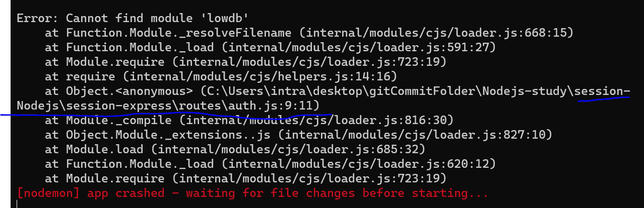 lowdb모듈을 찾을 수 없다고 뜹니다