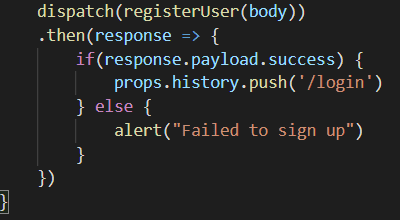 서버에서 success 키와 true 혹은 false의 값을 주는 것을 프론트엔드에서 response.payload.sucess 이렇게 받아주는 것 입니다.