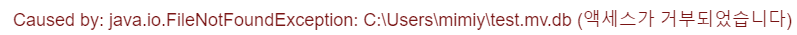 Caused by: java.io.FileNotFoundException: C:\Users\mimiy\test.mv.db (액세스가 거부되었습니다)