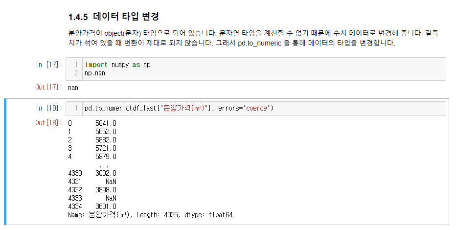 로 pd 에 numpy 를 불러오게 되면, pd.to_numeric(df_last["분양가격(m)"]) 가 오류가 나오게 되던데, pd 에는 pandas 라이브러리가 있기 때문에 오류가 나는 것인가요?